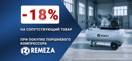 Акция -18% на сопутствующие товары и комплектующие при покупке поршневого компрессора Remeza