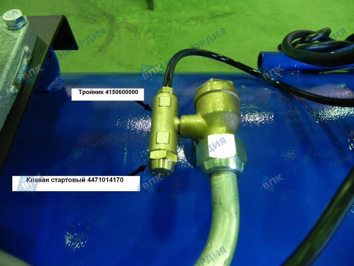 Информируем Вас, что с 1 октября 2015г. на установки компрессорные моделей CБ4/С-50.LB30А, СБ4/С-100.LB30А и СБ4/С-100.LB30АВ устанавливается стартовый клапан. Данное изменение конструкции связано с жалобами потребителей на затрудненный запуск компрессоров при подключении их к сети электропитания 220 В на которой происходит падение напряжения более чем на 5% от номинального при их включении. Проведенные испытания компрессорных установок укомплектованных стартовым клапаном показали, что они уверенно запускаются при понижении напряжения питающей сети. Пример компрессорной установки с установленным стартовым клапаном показан на фото.